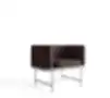 Stambus planas – tamsiai rudos spalvos sofos porankis su tekstūriniu gobelenu – modernus minimalistinis baldas.